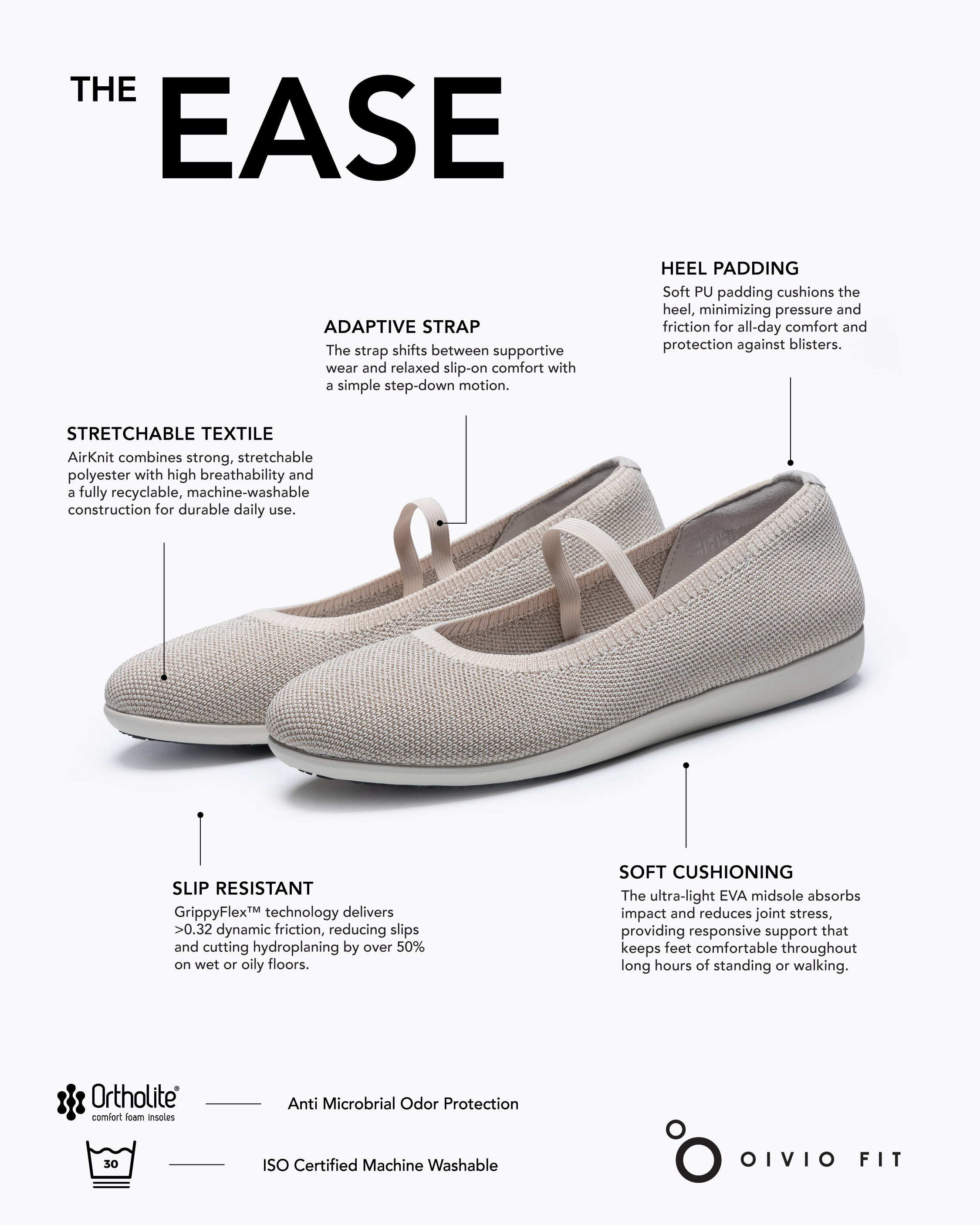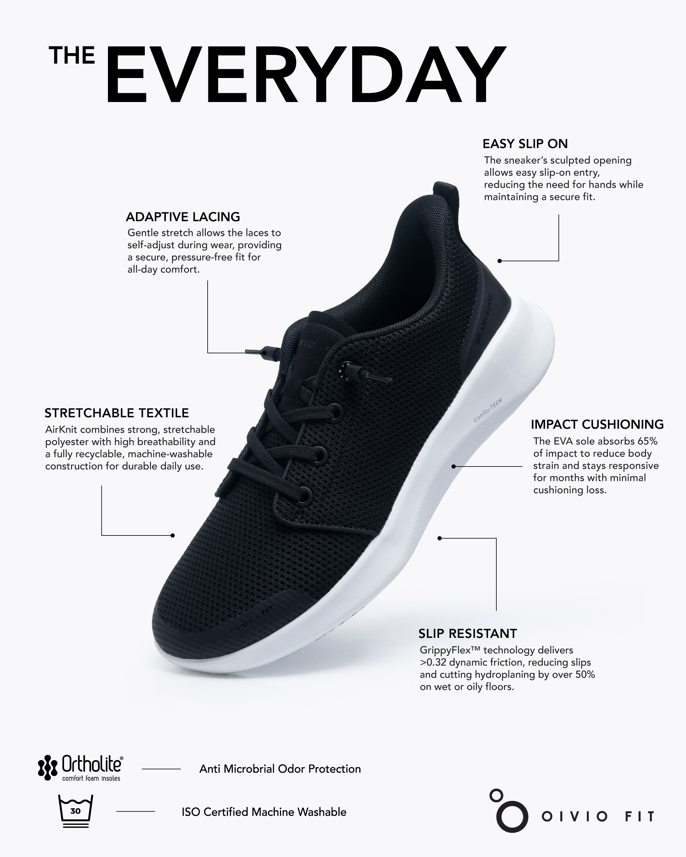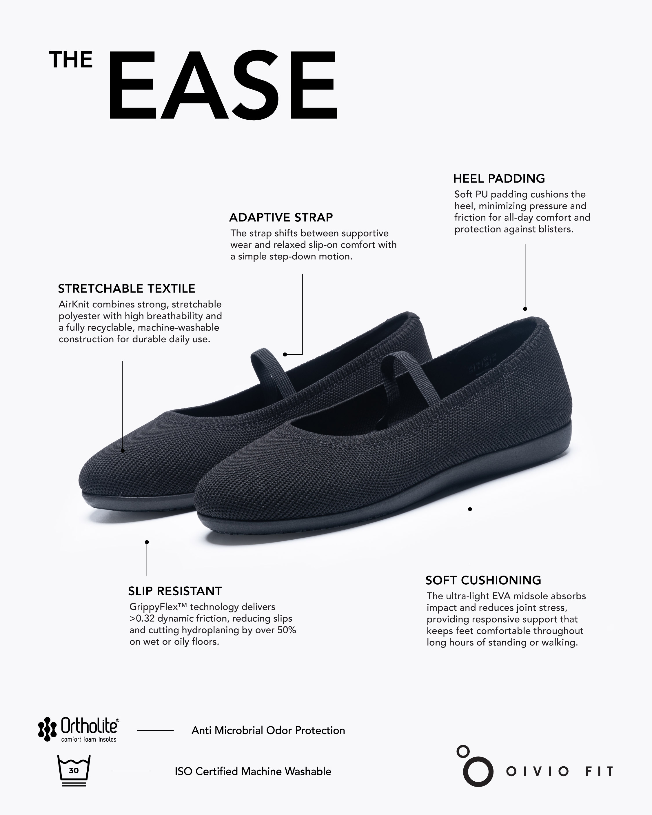 ⭐OrthoLite® 抗菌防臭高回彈環保鞋墊: