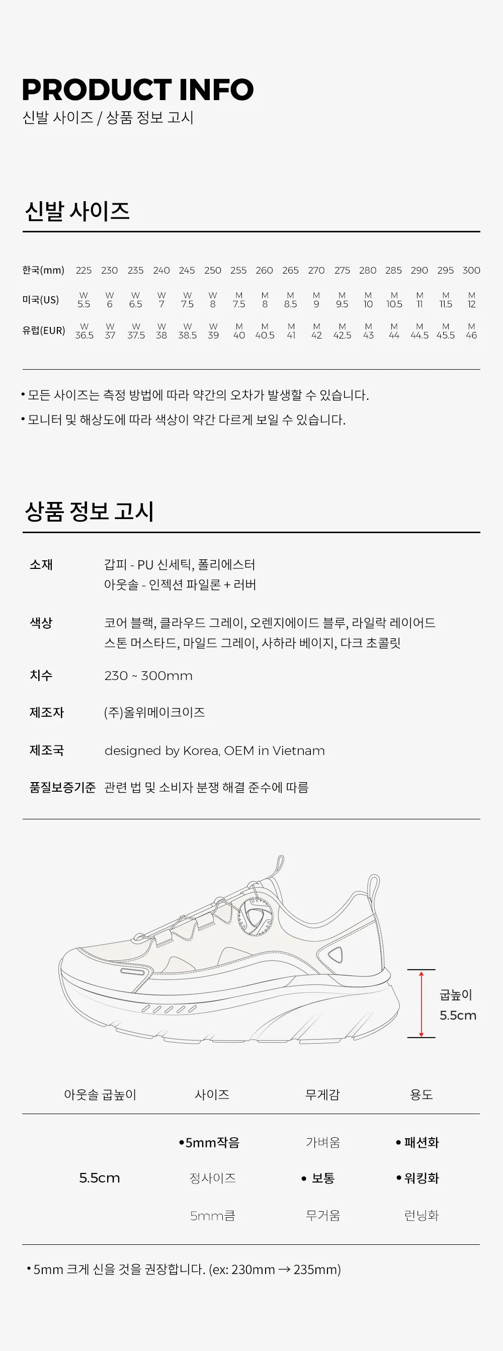 尺碼 按韓國尺寸 (mm) 為準,建議對照平日運動鞋尺碼選購