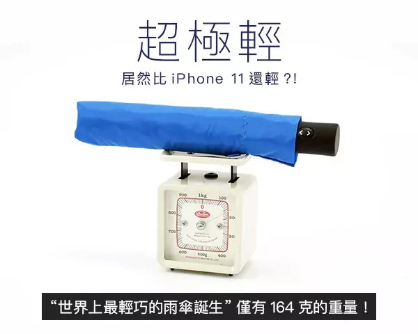 而 VERYKAL 8|超進化羽量自動傘,不僅成功減輕 26% - 43%的重量, 而且只剩230g!甚至比一支iPhone pro手機還輕盈!