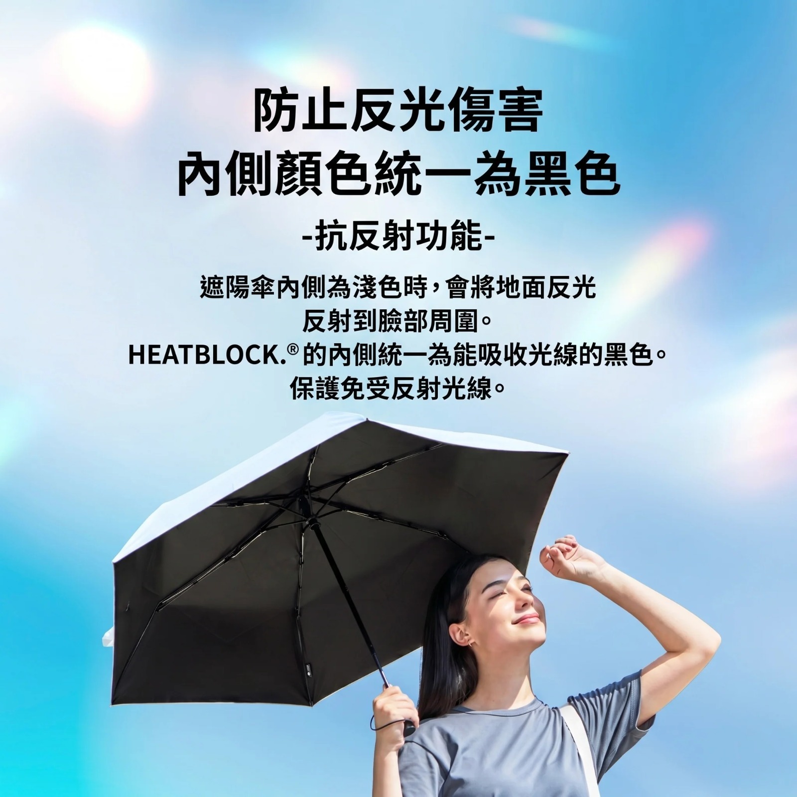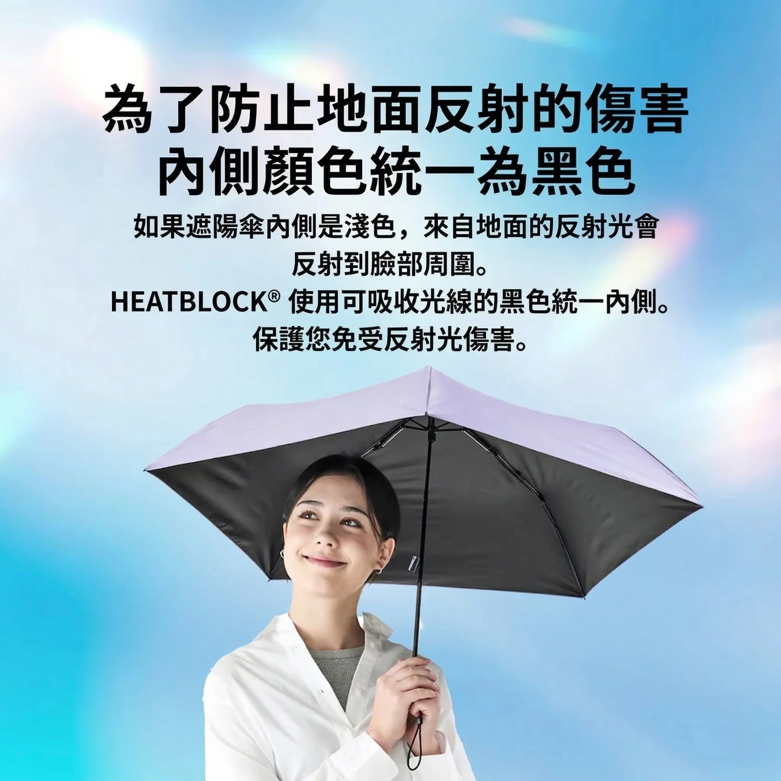 傳統的UV傘使用銀膠作為防曬塗層,但是銀膠會反射地面的輻射光,再照到臉上,這樣出門前的防曬都白擦了...