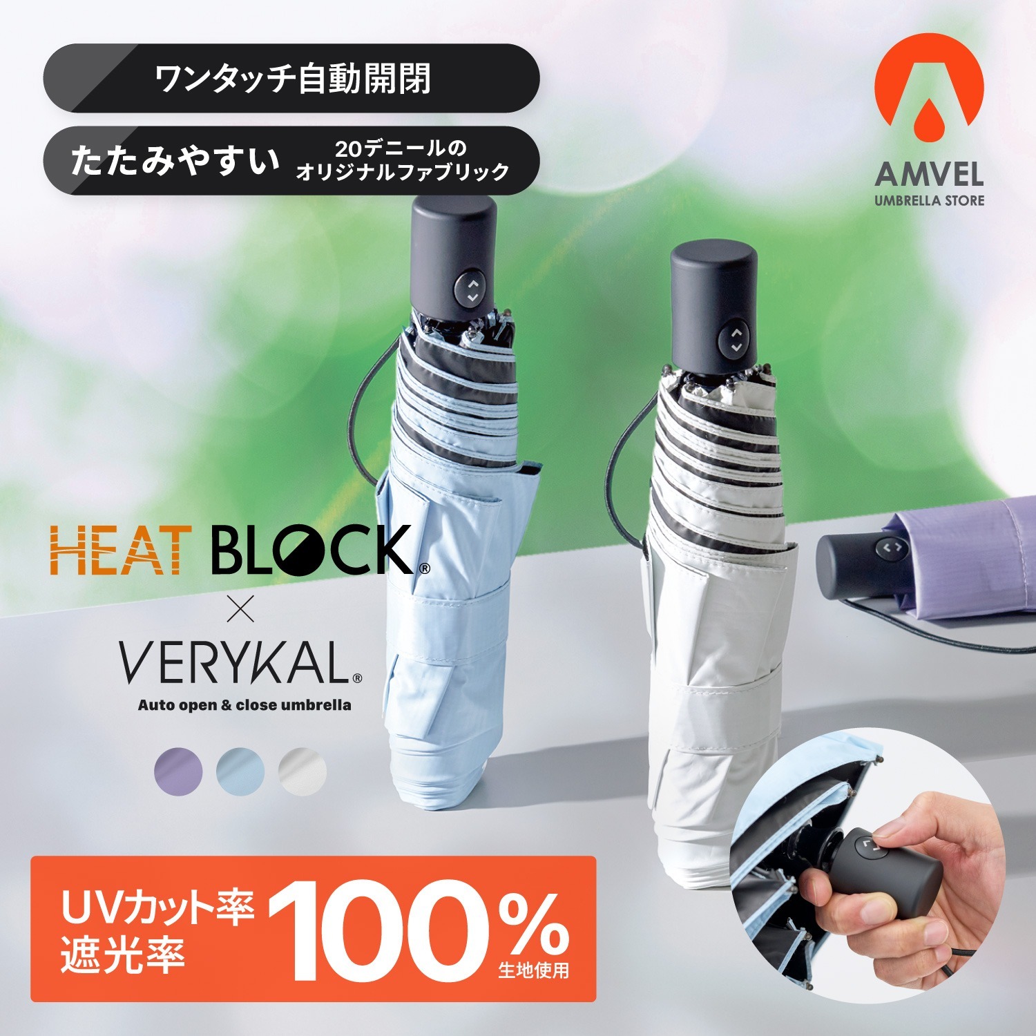 Amvel HEATBLOCK VERYKAL 全遮光自動摺疊傘