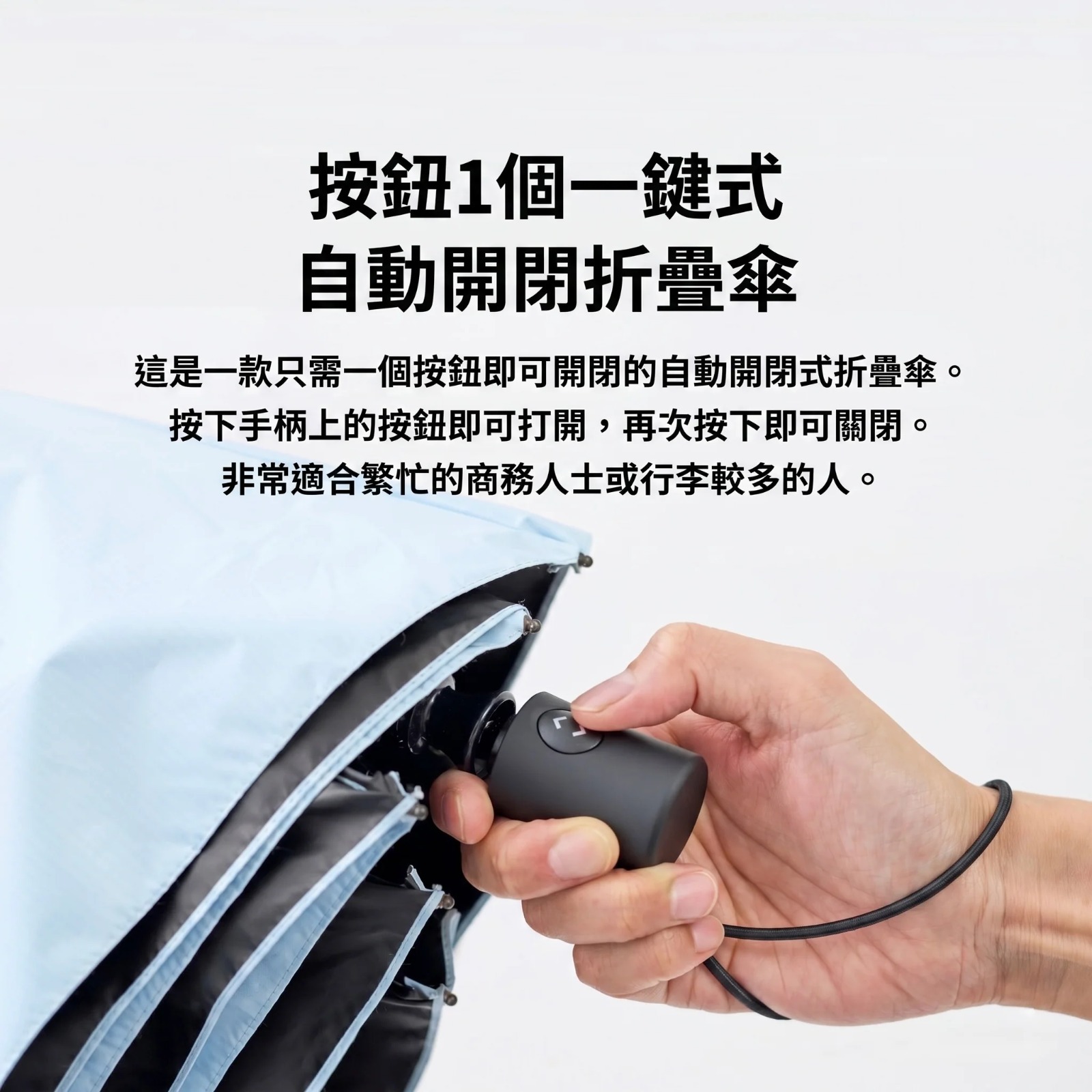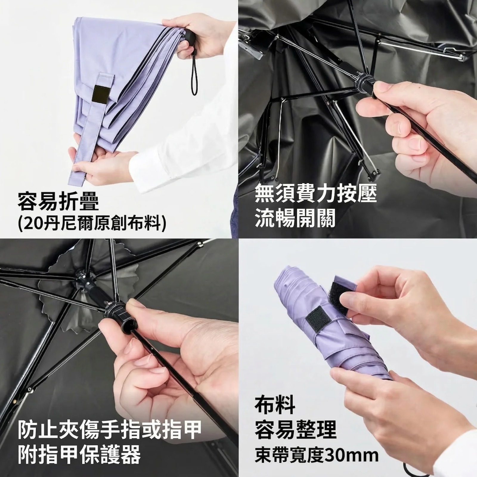 可以分段式的收起雨傘,不爆衝跟亂彈,既安全又方便,即使力氣較小的小孩和長輩都可以安心的使用。