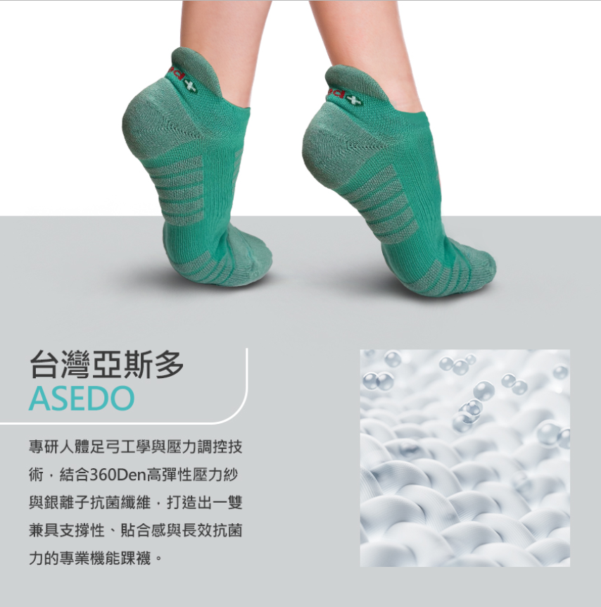 打造出一雙兼具支撐性、貼合感與長效抗菌力的專業機能踝襪。