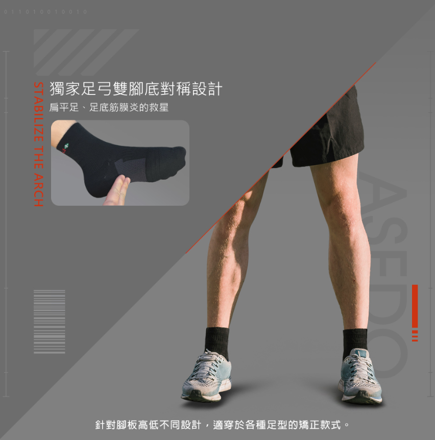 台中Asedo 石墨烯黑科技弓學短襪