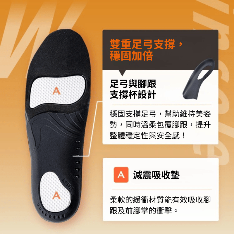 透過能啟動核心肌群的專利鞋墊,幫助你矯正走路姿勢,