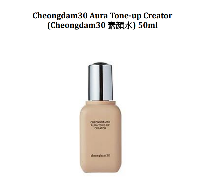 7. :Cheongdam30 AURA TONE-UP CREATOR 50ml 質地輕盈、不油膩,塗抹舒適,讓您的肌膚倍感清新透氣。