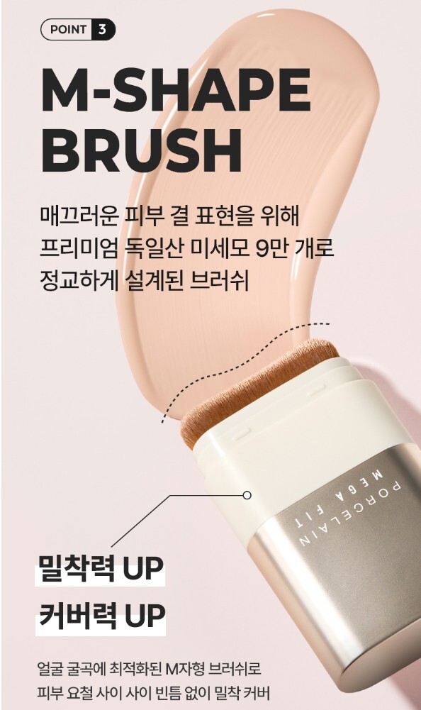 粉底棒附的刷頭也超級好用!毛是軟又帶有彈性的M型刷毛,貼合臉型又舒服,鼻翼、嘴角、眼角等細部範圍,也能輕鬆刷開粉底,且不會殘留刷痕。