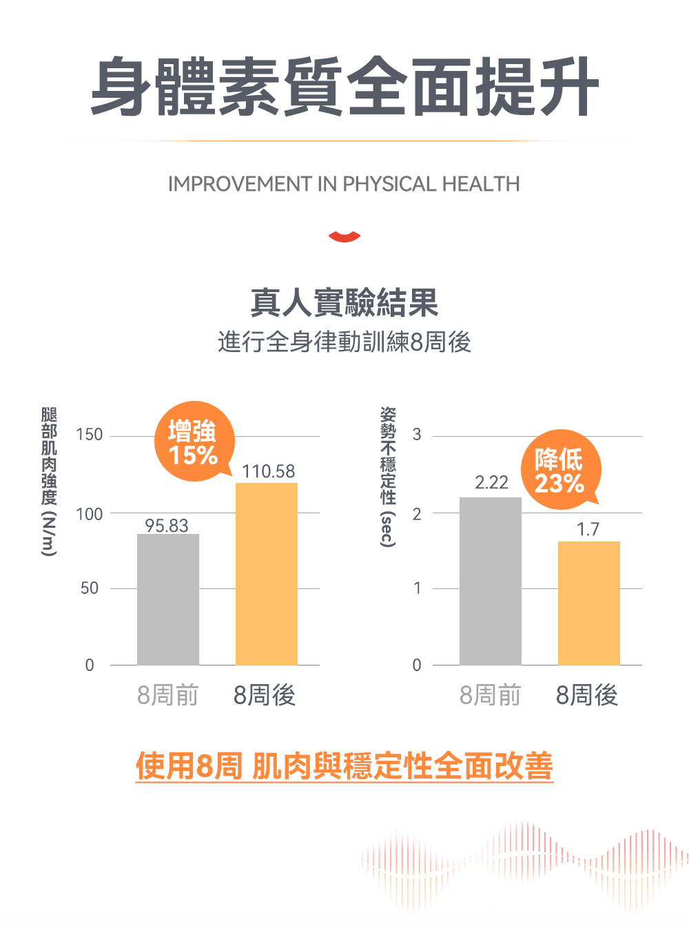 ⛓穩定律動:持續穩定律動促使肌肉被動收縮,保持心率平穩,提高代謝
