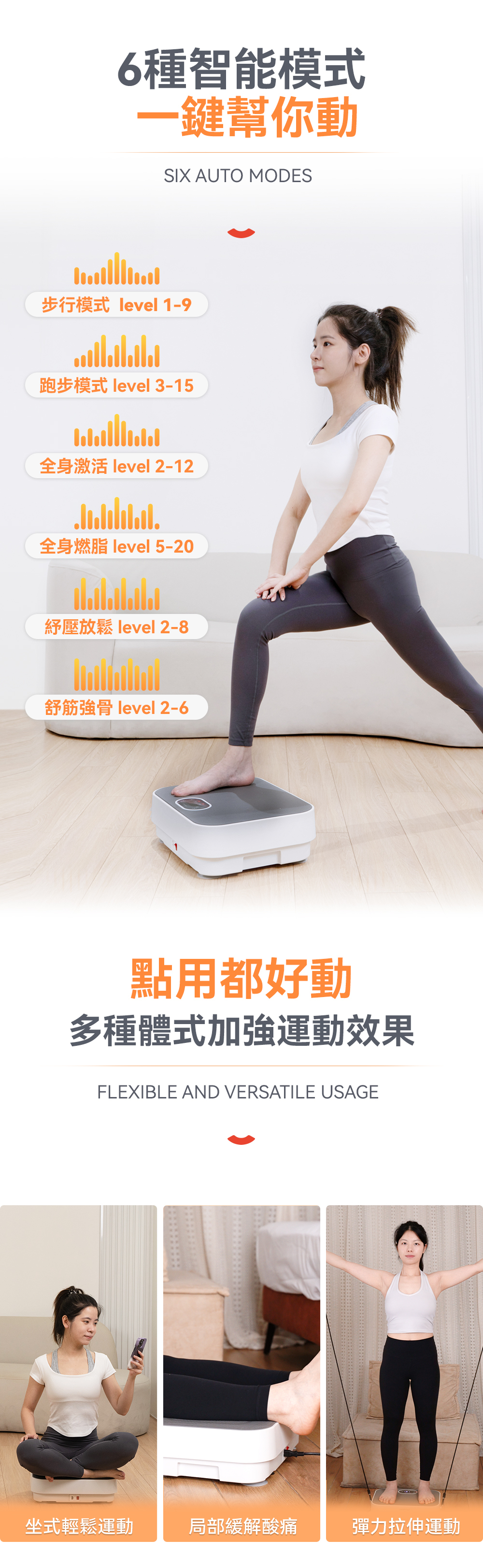 🤙6大模式:步行模式/跑步模式/全身激活/全身燃脂/舒壓放鬆/舒筋強骨 任你揀