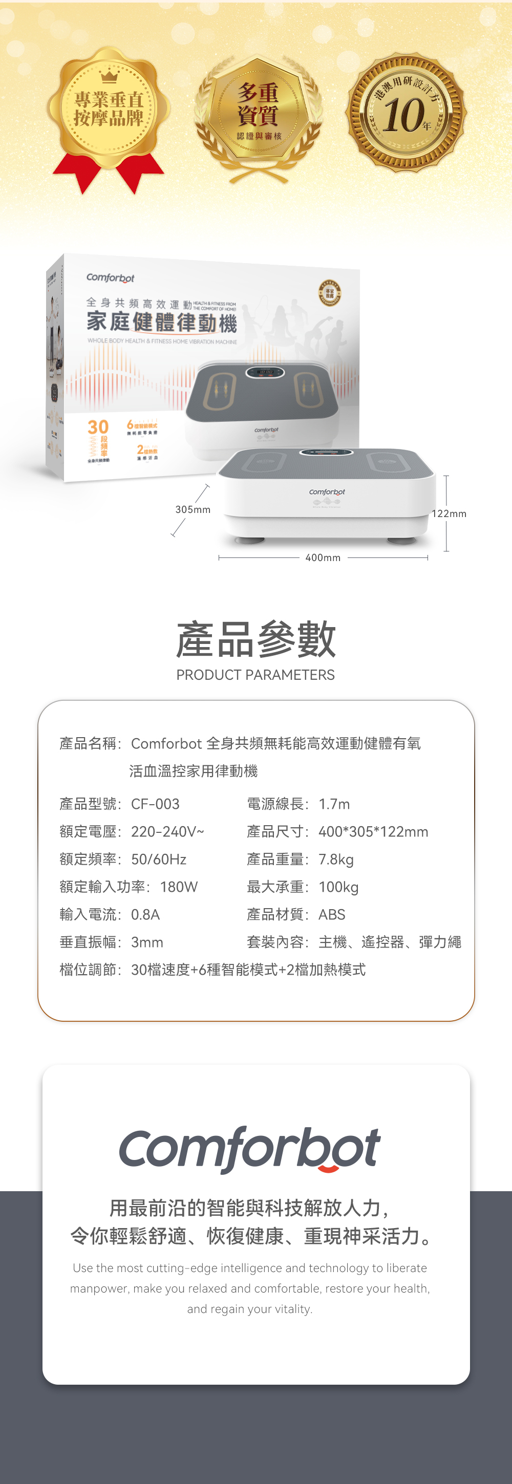 Comforbot 全身共頻無耗能高效運動健體有氧活血溫控家用律動機【截單日 : 最後今天,預計 : 10月尾至11月中發貨】