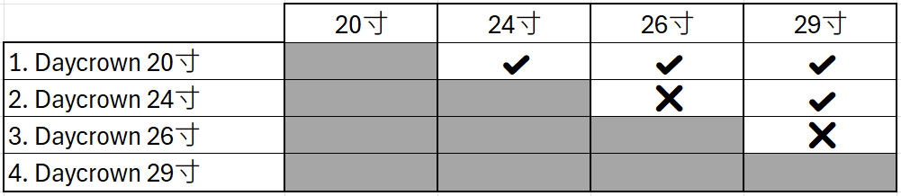 Daycrown 20寸可放入 24寸、26 寸或29寸
