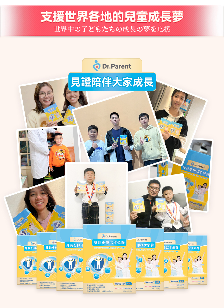 日本Bonepep®專利高吸收成長多肽可以通過增加造骨細胞的數量,強化骨骼生長動力,攝取促進骨形成的鈣、膠原等成分幫助孩子長高。