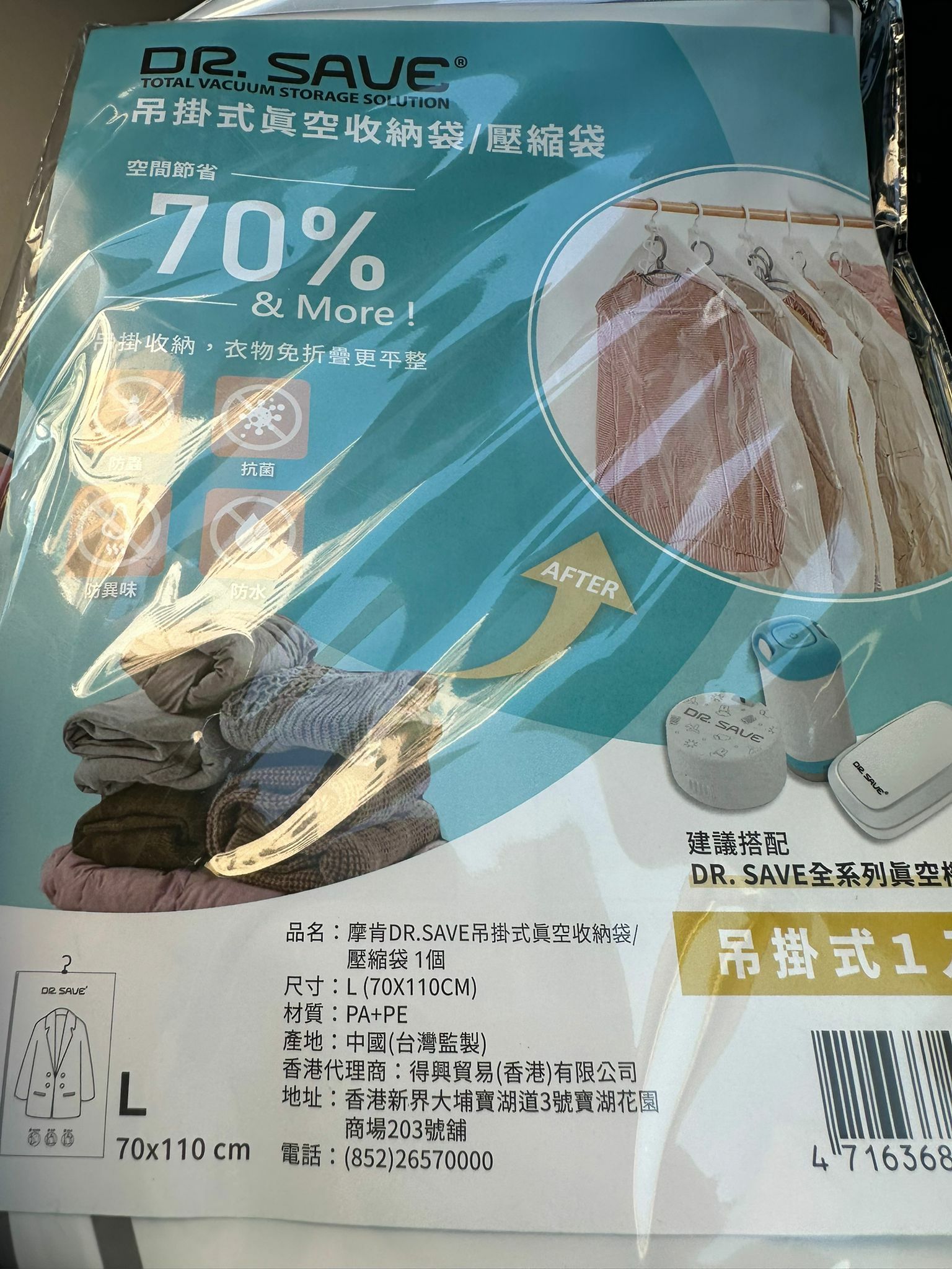 DR.SAVE 掛式真空收納袋(70X110CM)(1個)