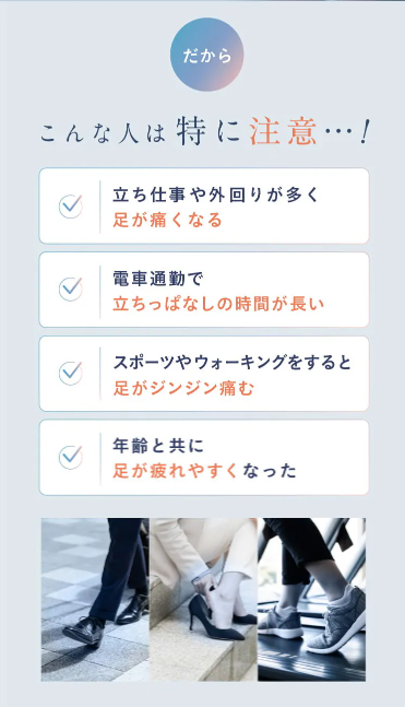 建議人群:長期走路不適、腳痛、關節不適、運動引致肌肉酸軟、長期穿高跟鞋。