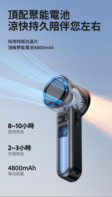 採用渦輪增壓設計,100 段無極風,每分鐘13000 轉,冷敷降溫,吹出冰爽風,令你享受冰鎮快感。