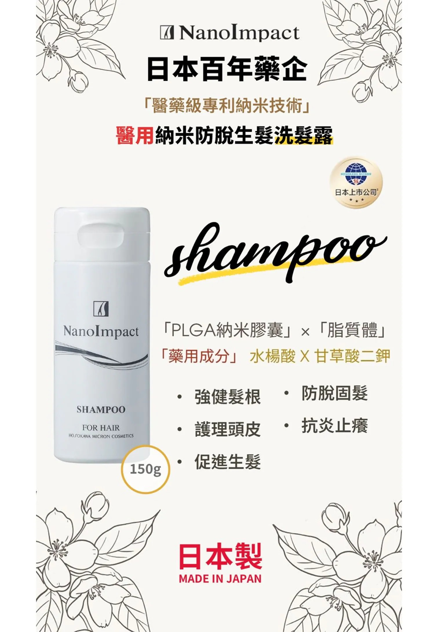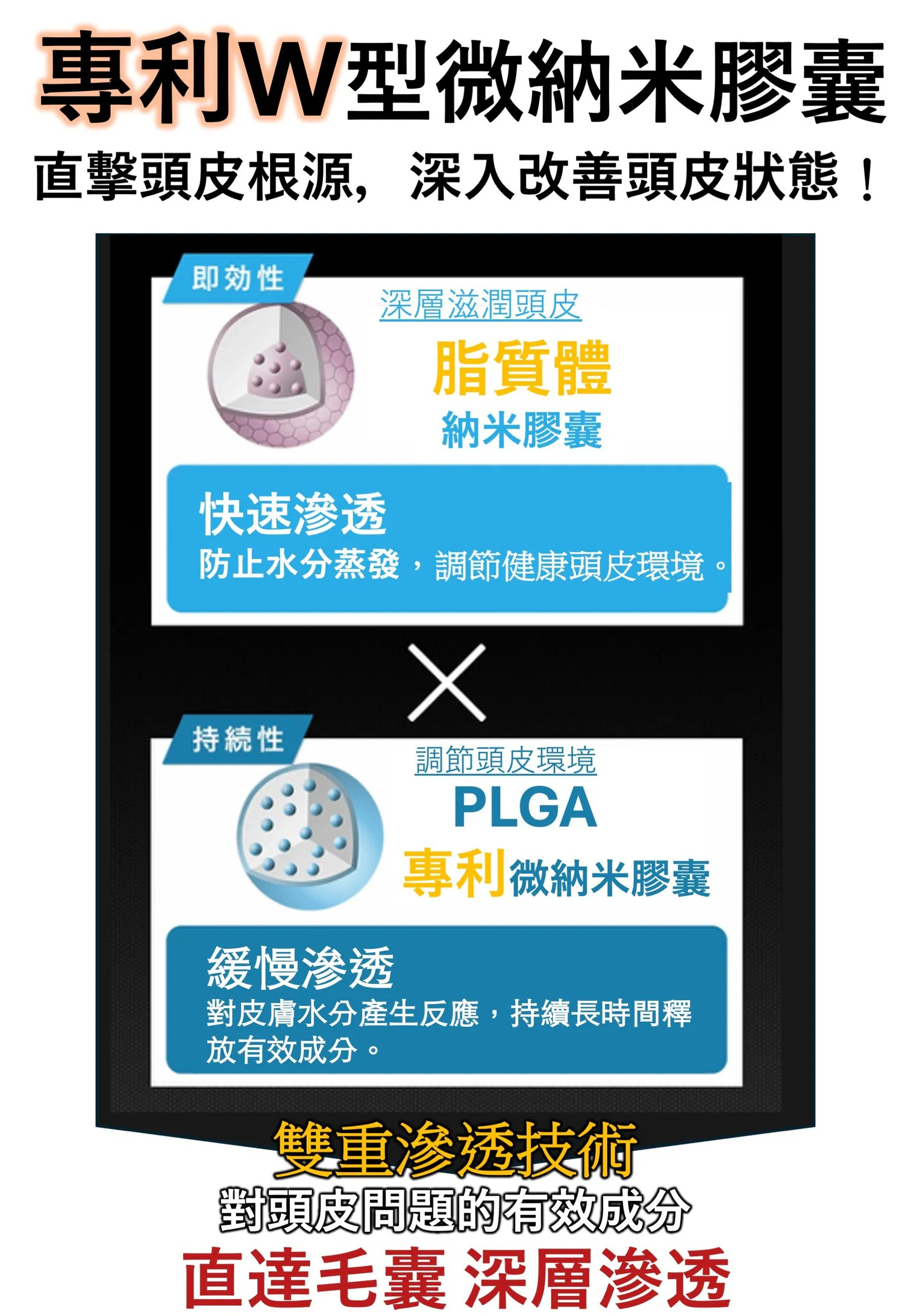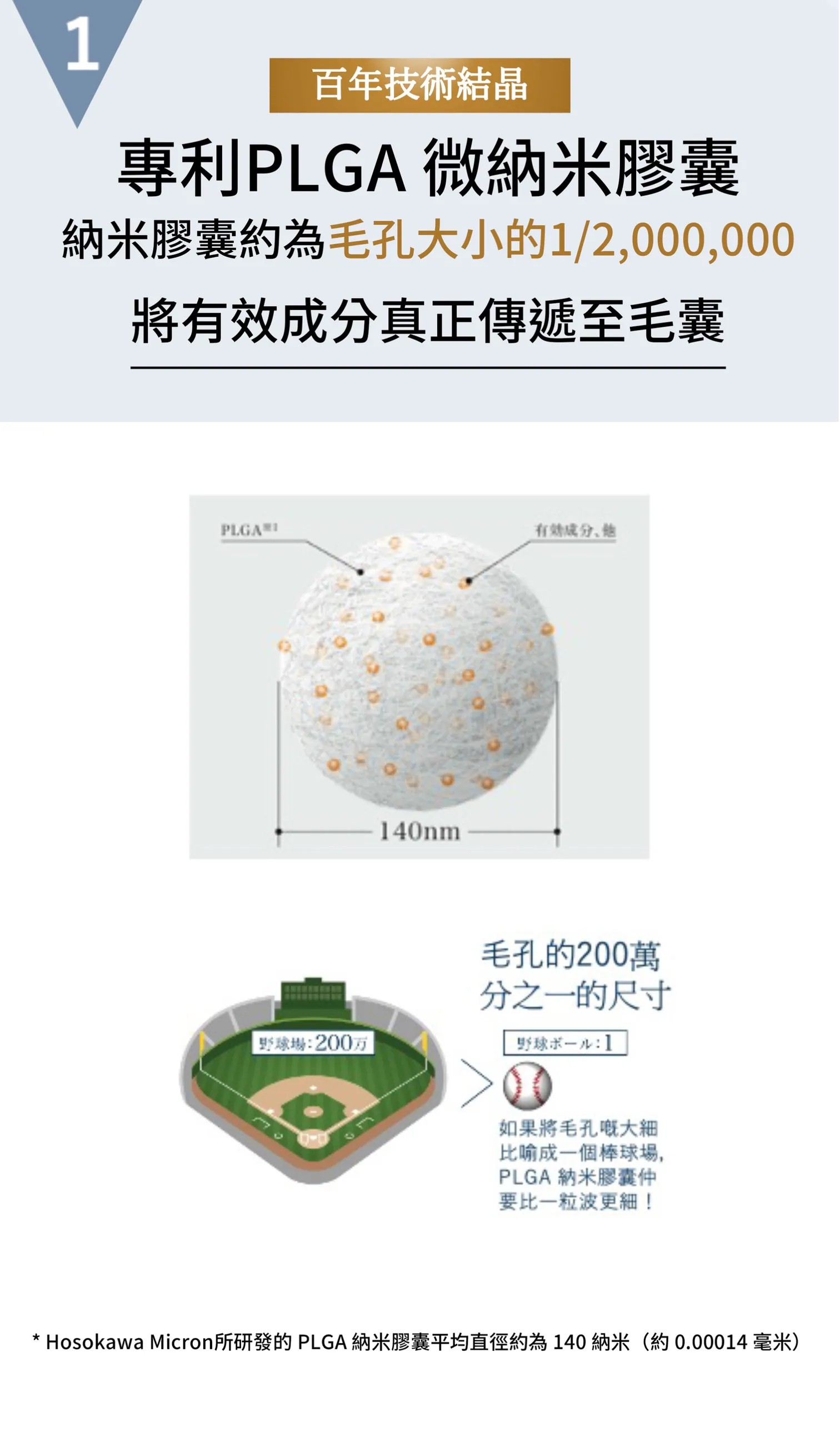 ✓ 採用專利「PLGA微納米膠囊」×「脂質體」雙重滲透技術,深入頭皮