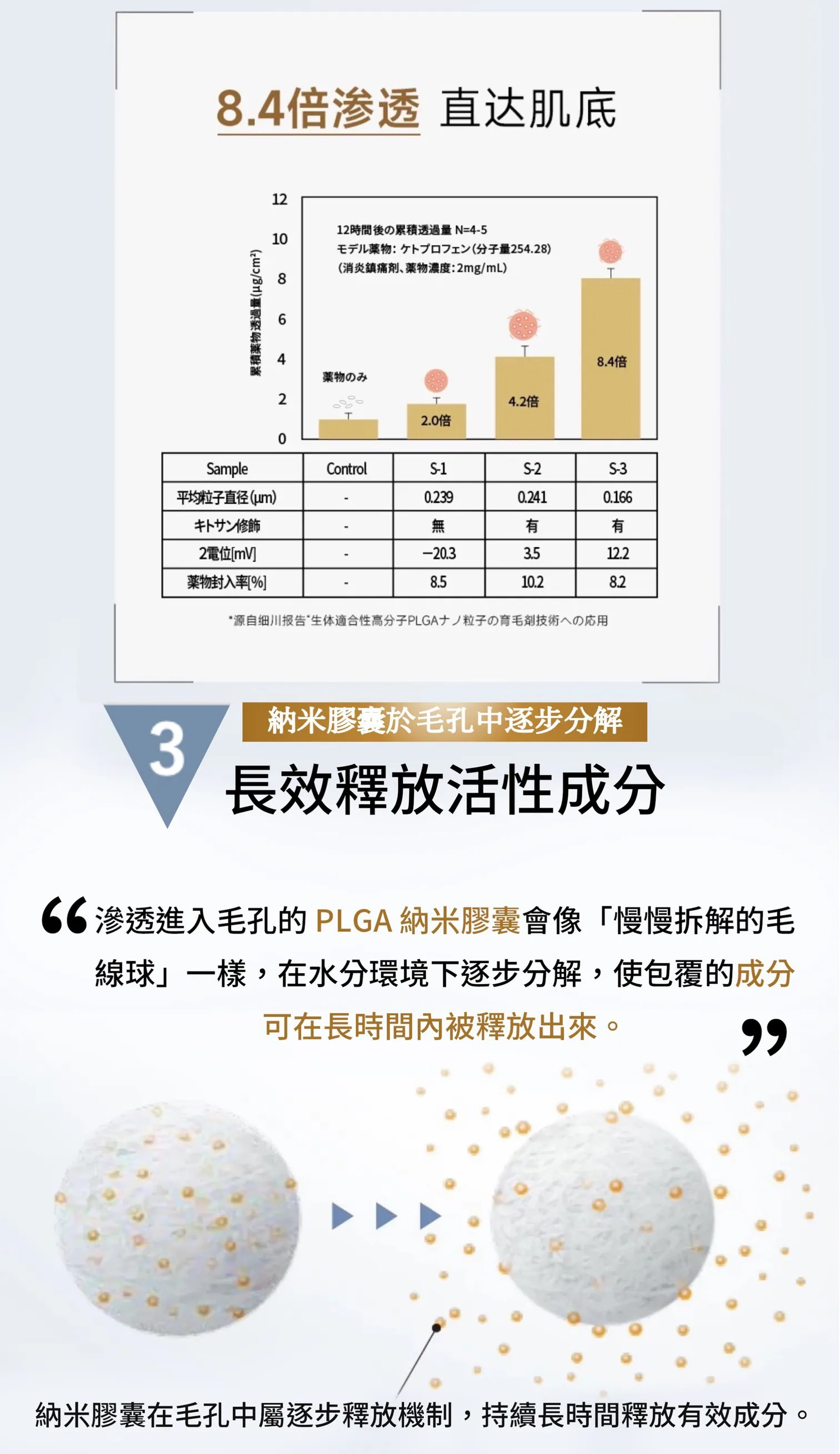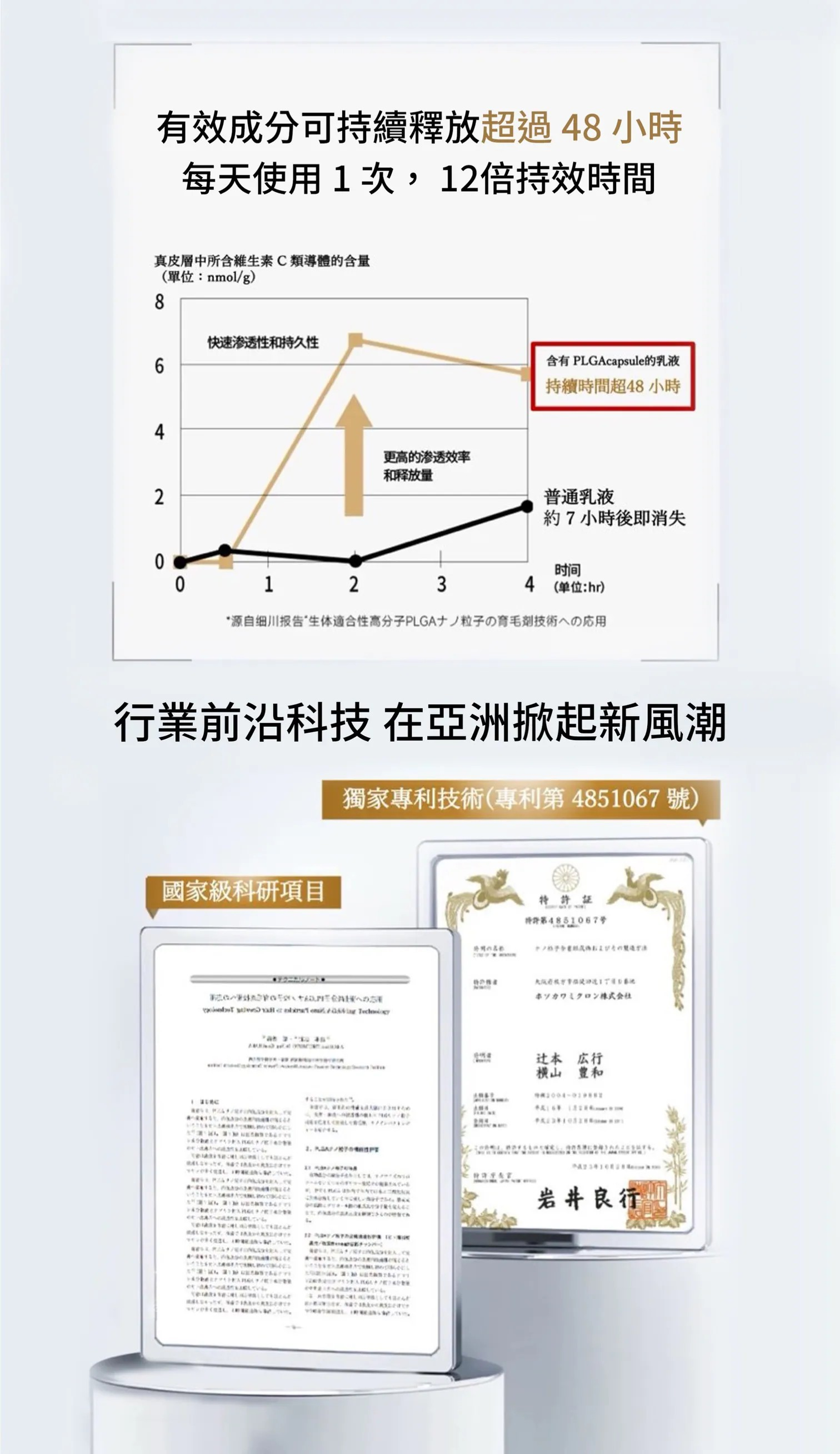 🔅 含 P L G A 納 ⽶ 膠 囊持 續 時 間 : 1 2 ⼩ 時 以 上