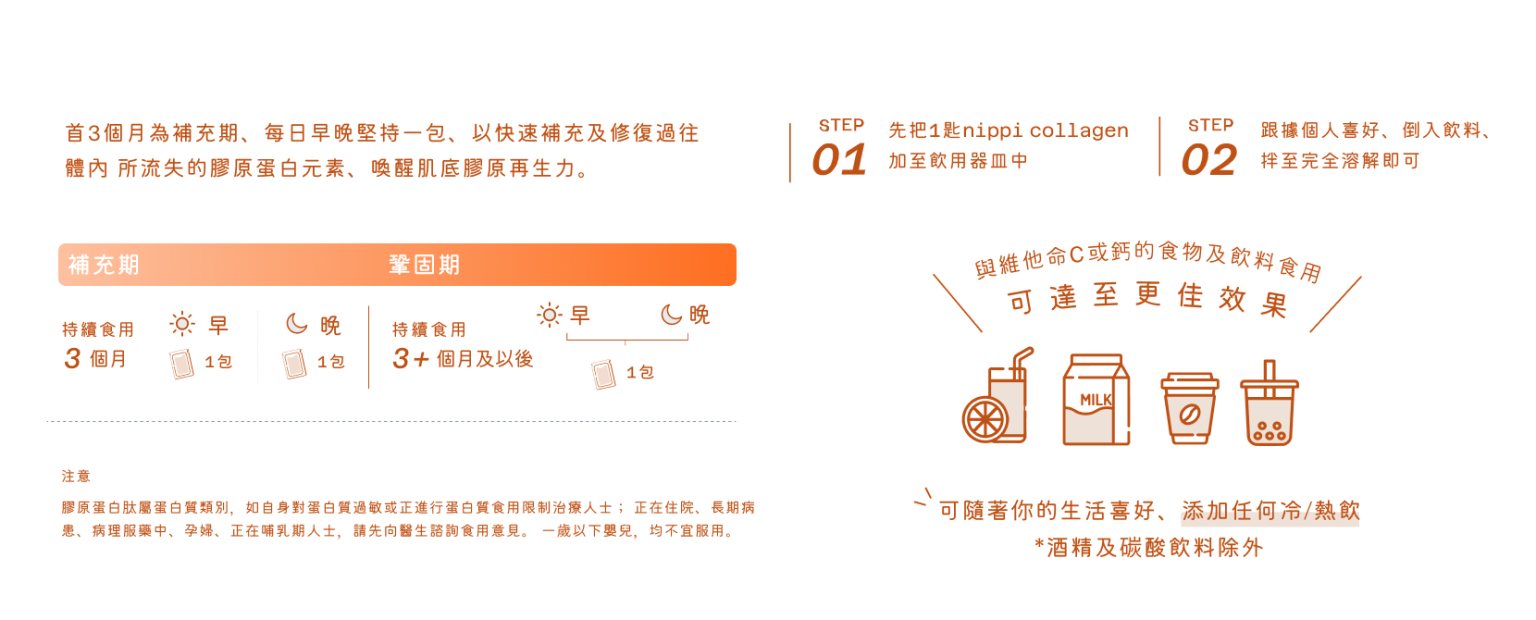 令nippi collagen Premium更容易溶解於飲料和食品中,並迅速被人體消化吸收。
