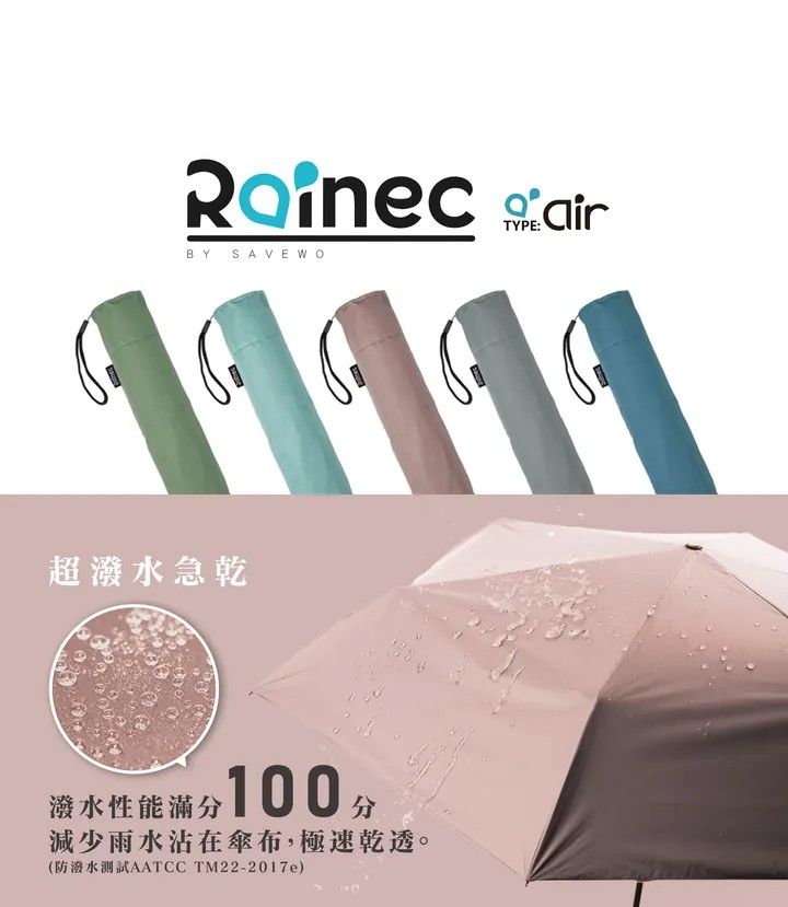 經專業驗證潑水測試 AATCC TM22-2017e,潑水性能滿分100分,減少雨水沾在傘布,極速乾透。