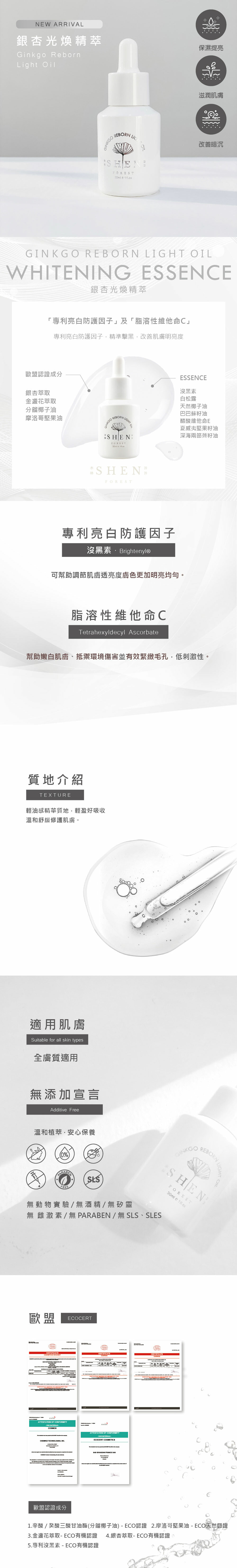 輕油感精華質地,輕盈好吸收,添加多種嫩白成分,改善暗沉、美白,使肌膚更加亮白有光澤。