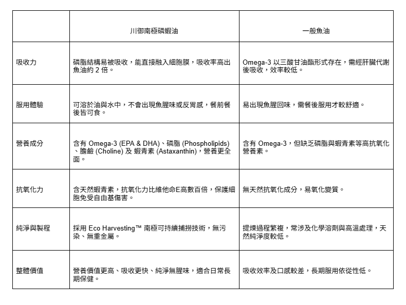 川御南極磷蝦油是採用挪威 AKER Biomarine Superba Boost™ 專利成分的高效 Omega-3 磷蝦油,