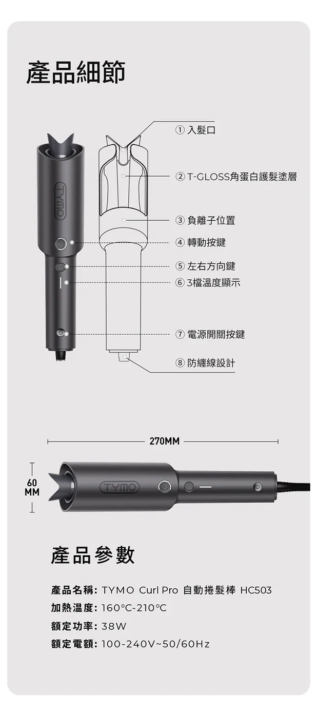 產品名稱:TYMO CurlPro Plus 高效自動捲髮棒
