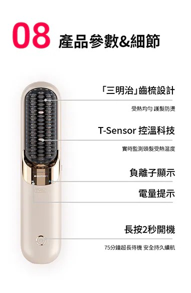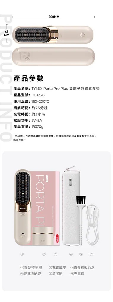 產品名稱:TYMO Porta Pro Plus 負離子無線直髮梳
