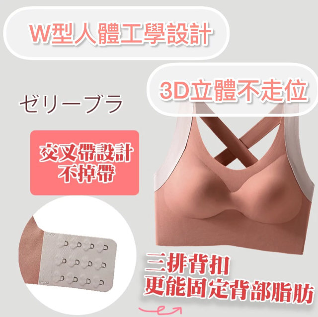 傳統胸圍「緊又勒肉 , 鬆又跌帶」 , 着咗Jelly X Bra唔使再受到傳統胸圍嘅折磨, 以後可以安心自在、輕輕鬆鬆去街街, 做運動, 從此不再尷尬地在街上調整肩帶。