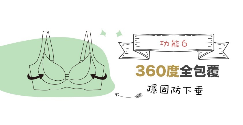 ✅ 360度穩固包覆,幫助胸部提托集中,解決容易「離罩」的困擾