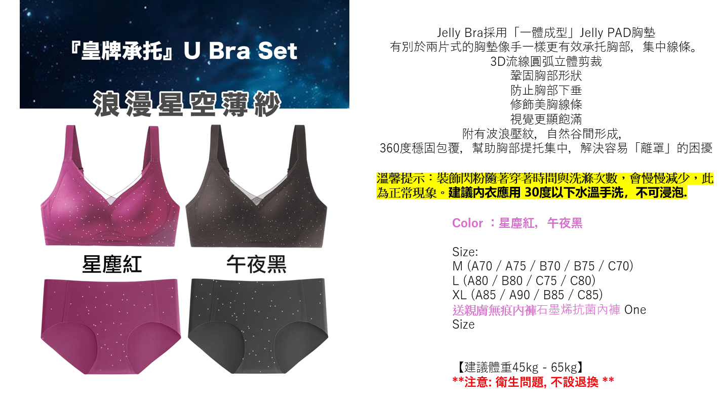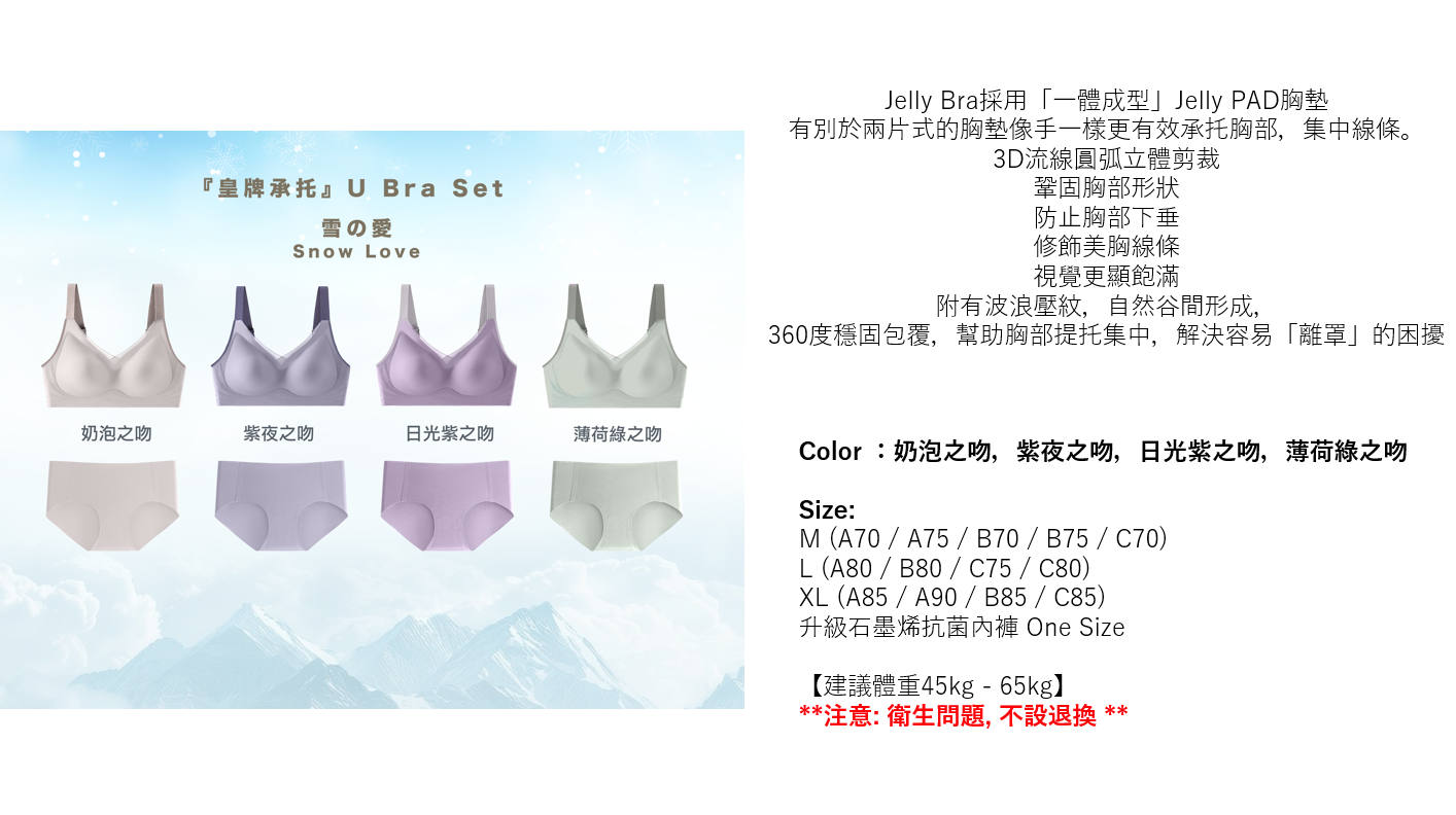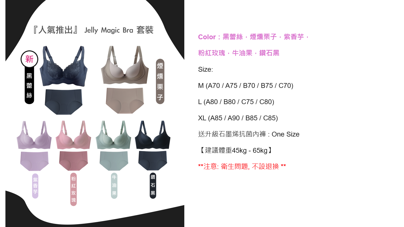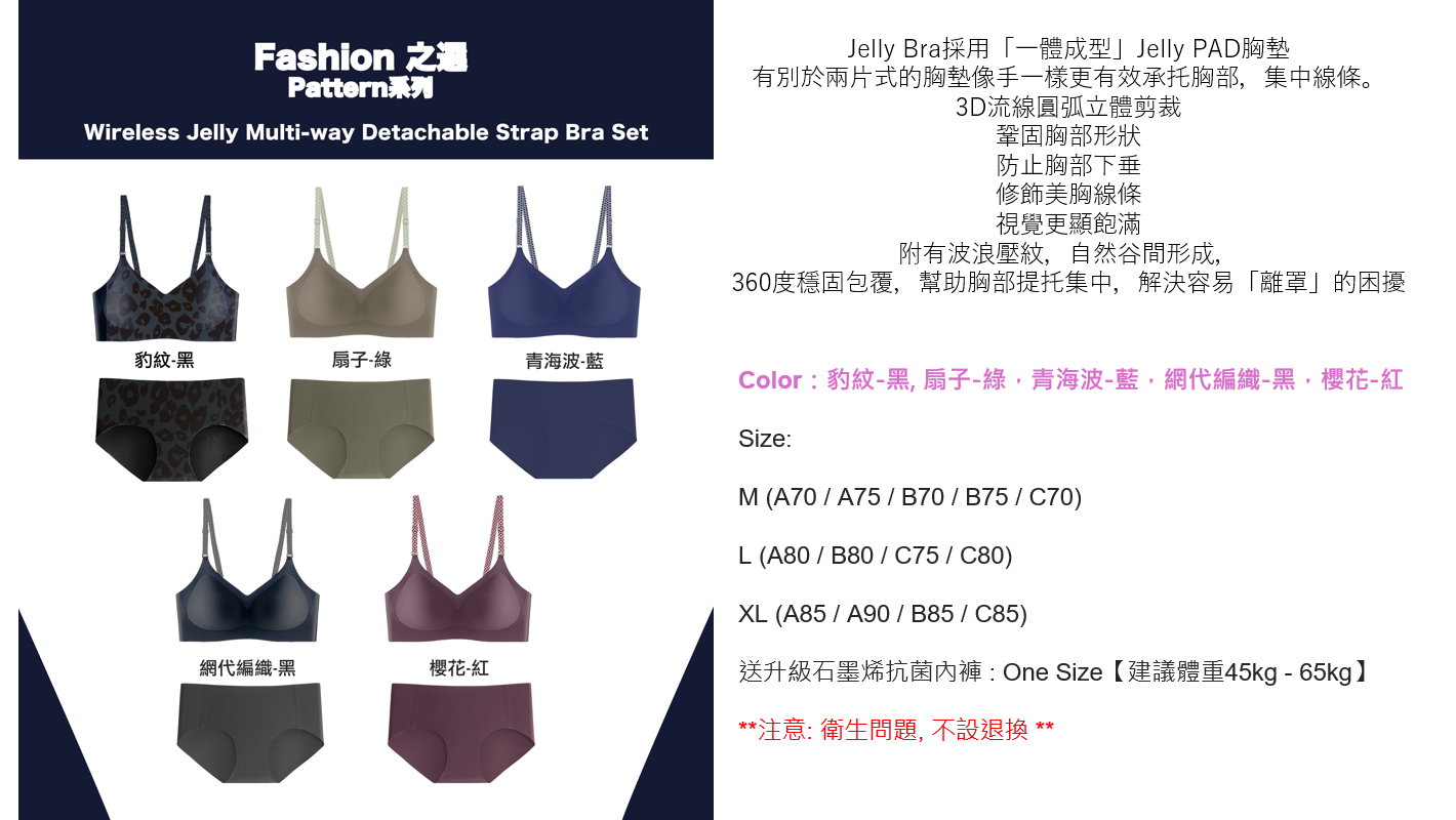 - 『買三送一』買滿三套 Jelly bra 套裝 ,贈送Jelly Bra胸圍一個 (不包內褲), 價值 HK$238