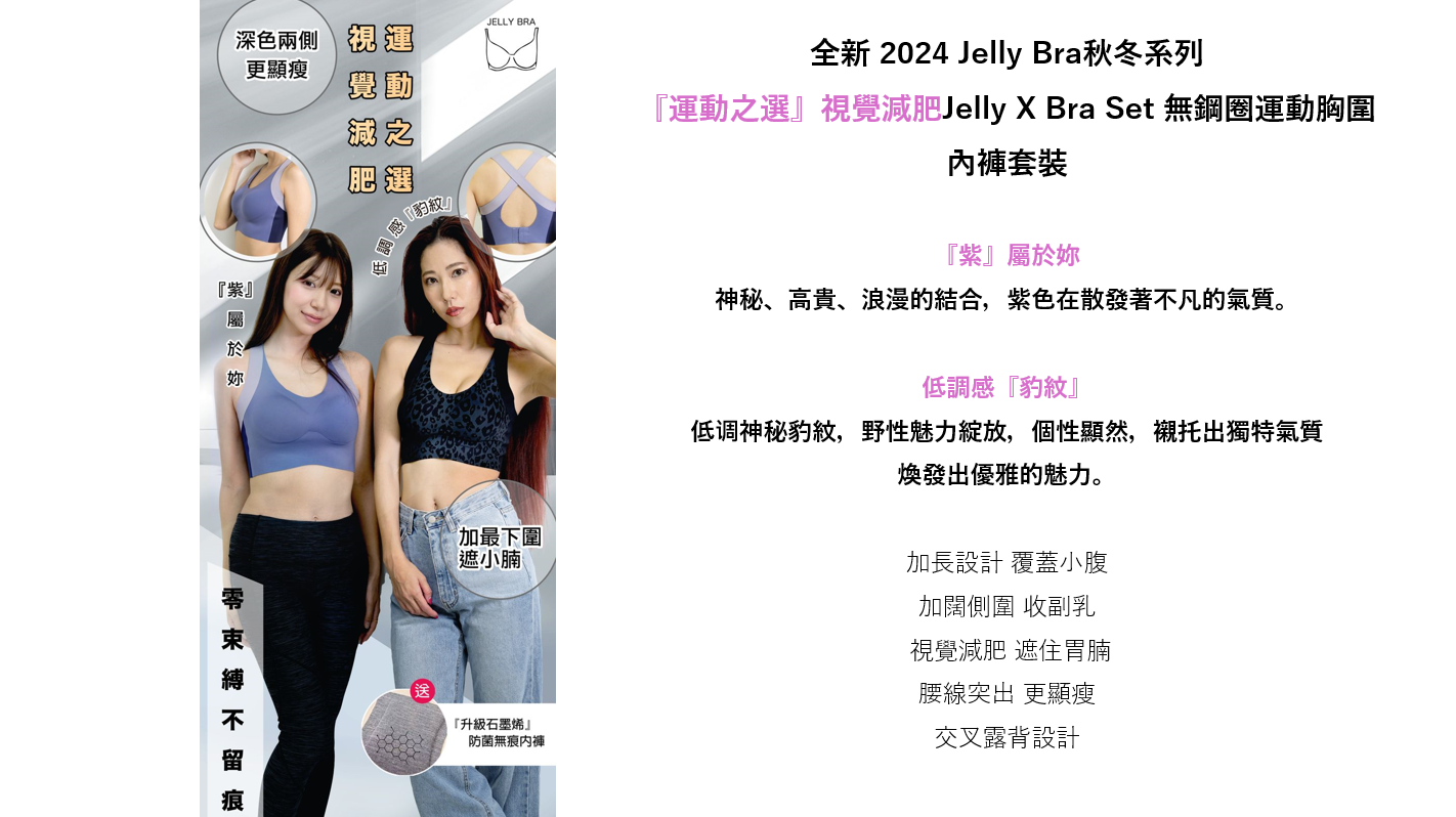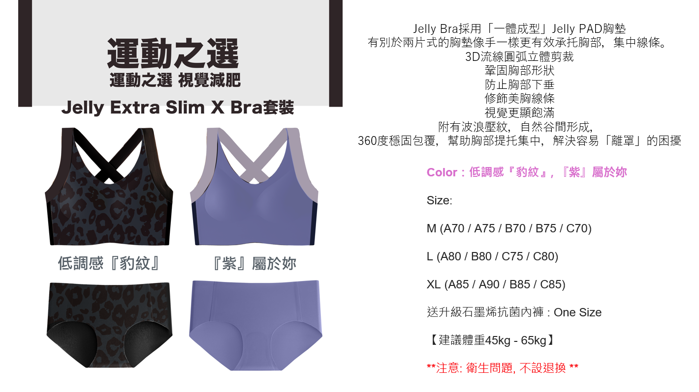 ![全新升級推出]- 全方位舒高透氣適機能性- Jelly Extra Slim X Bra set 套裝](https://img.shoplineapp.com/media/image_clips/659cce0345b8640017bce822/original.png?1704775170)