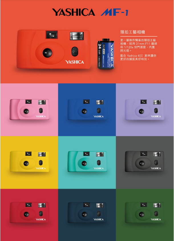 「文青又夾帶復古」風格絕對是最受各位後生仔女追捧的,除了衣著上走簡約愜意的打扮,同時有一樣東西令「真文青」和「偽文青」都愛不釋手,那就是菲林相機,而今年最令人驚喜的是擁有悠長歷史的日本品牌YASHICA再度活躍,推出經典菲林相機的MF-1、MF-2復刻版,YASHICA再度受大家追捧。