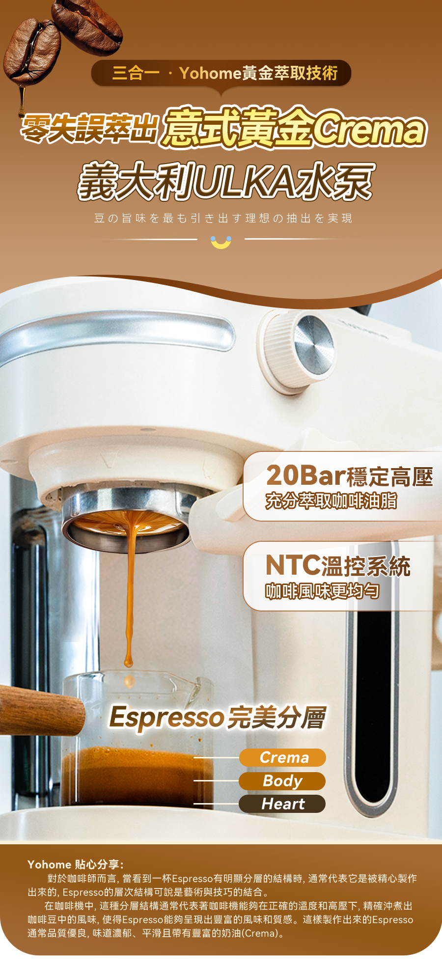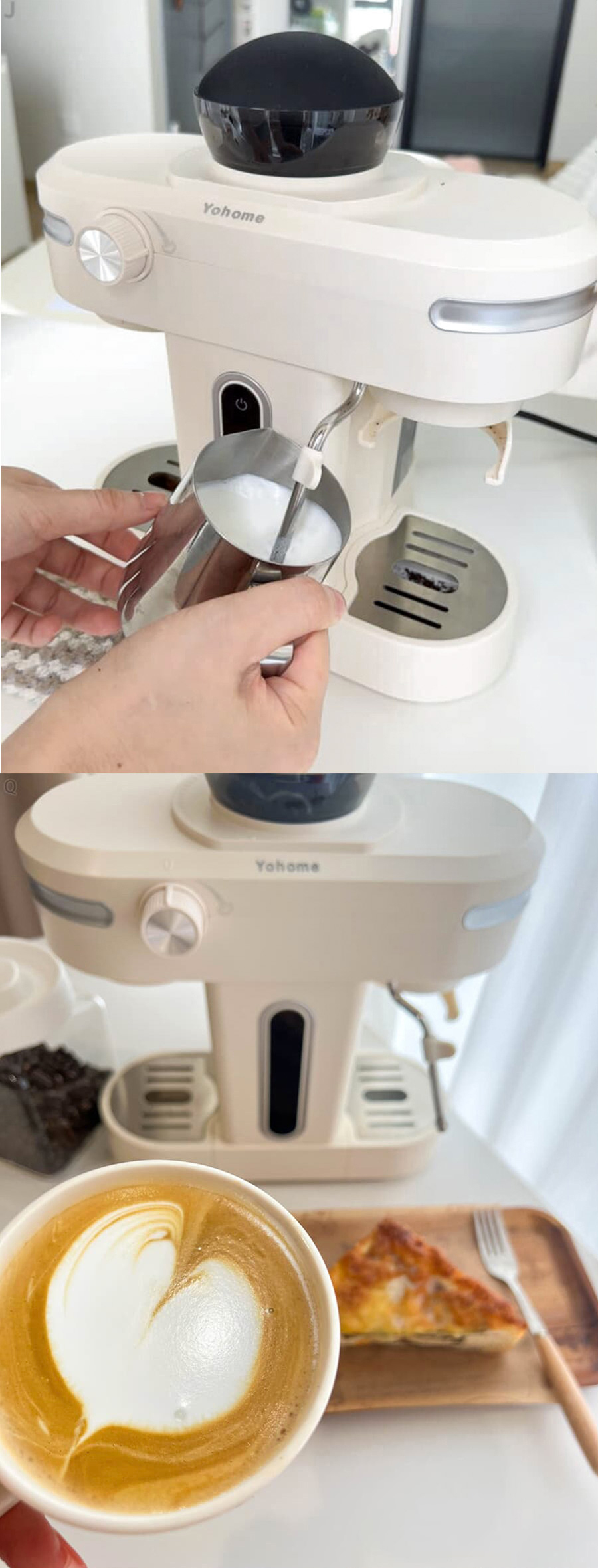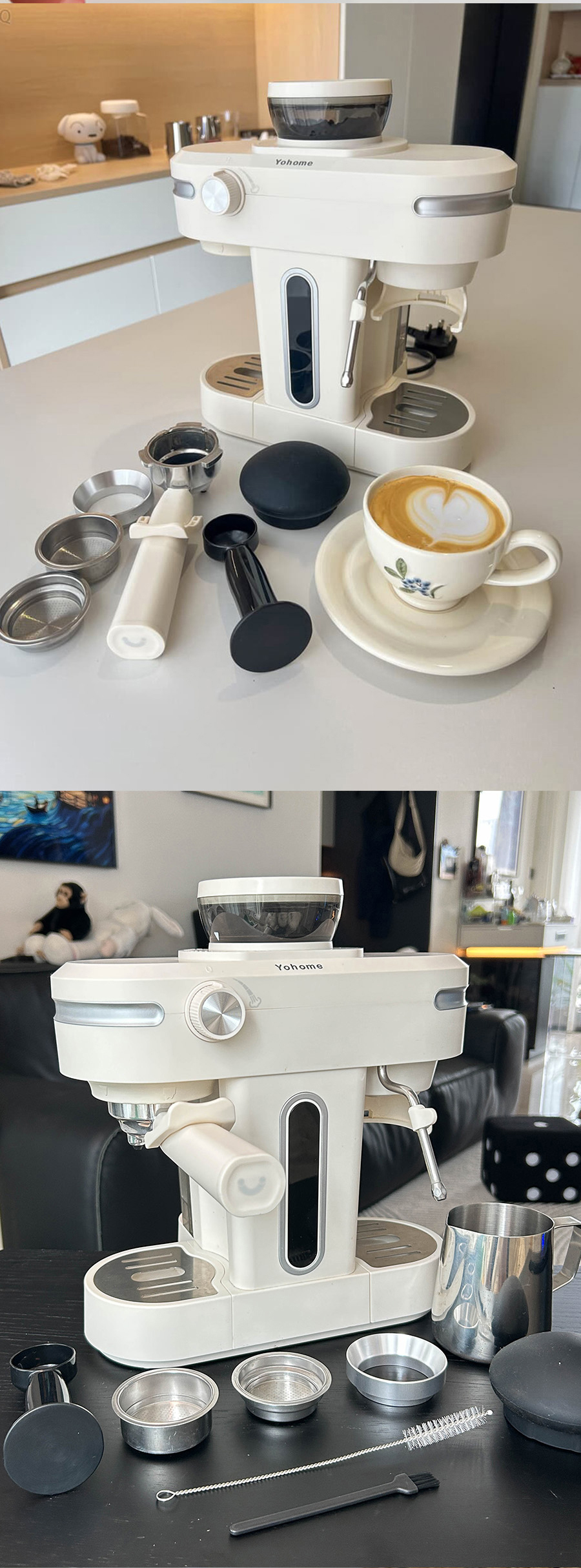小而強大的半自動意式咖啡機 #Yohome 迷你專業級現磨鮮萃奶泡3合1半自動家庭意式咖啡機
