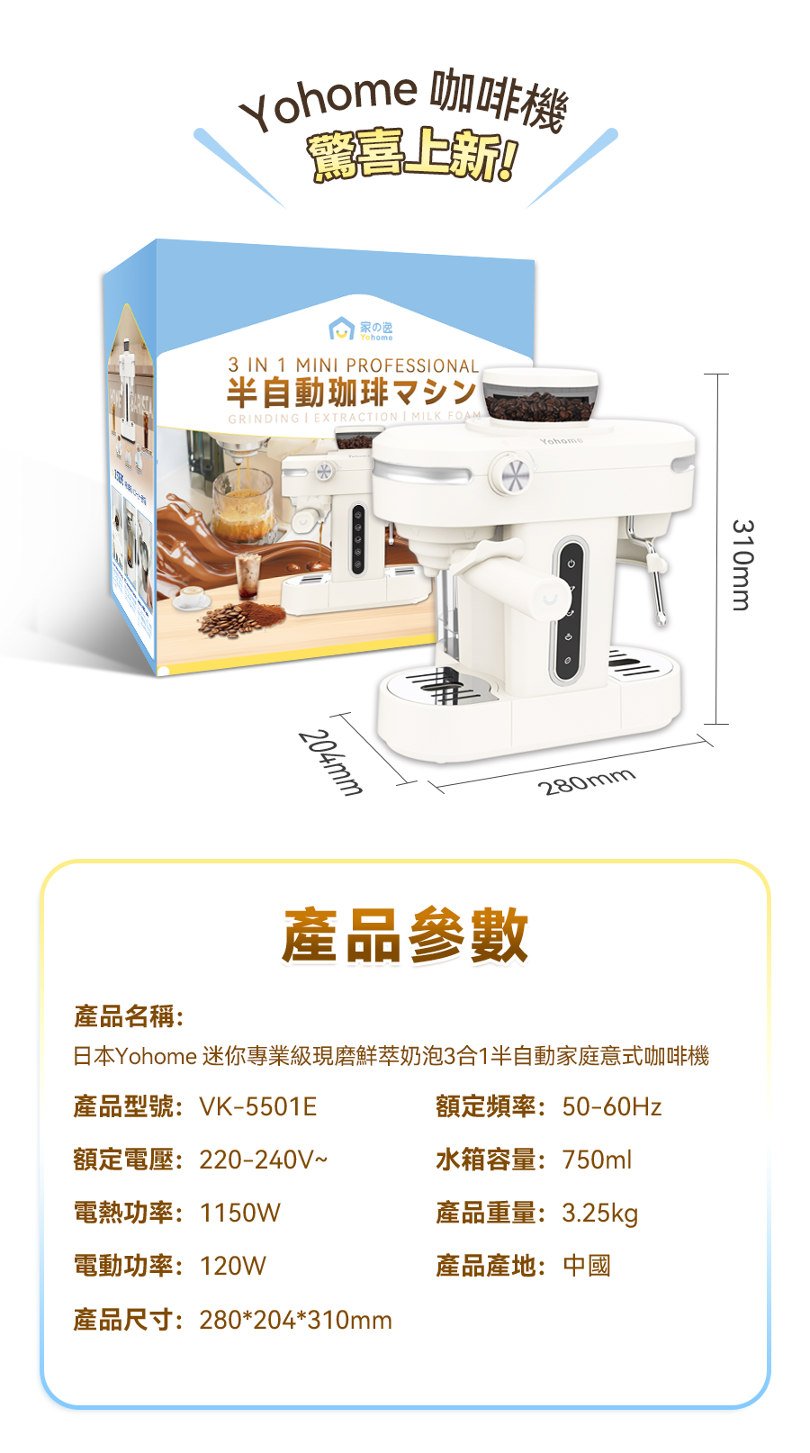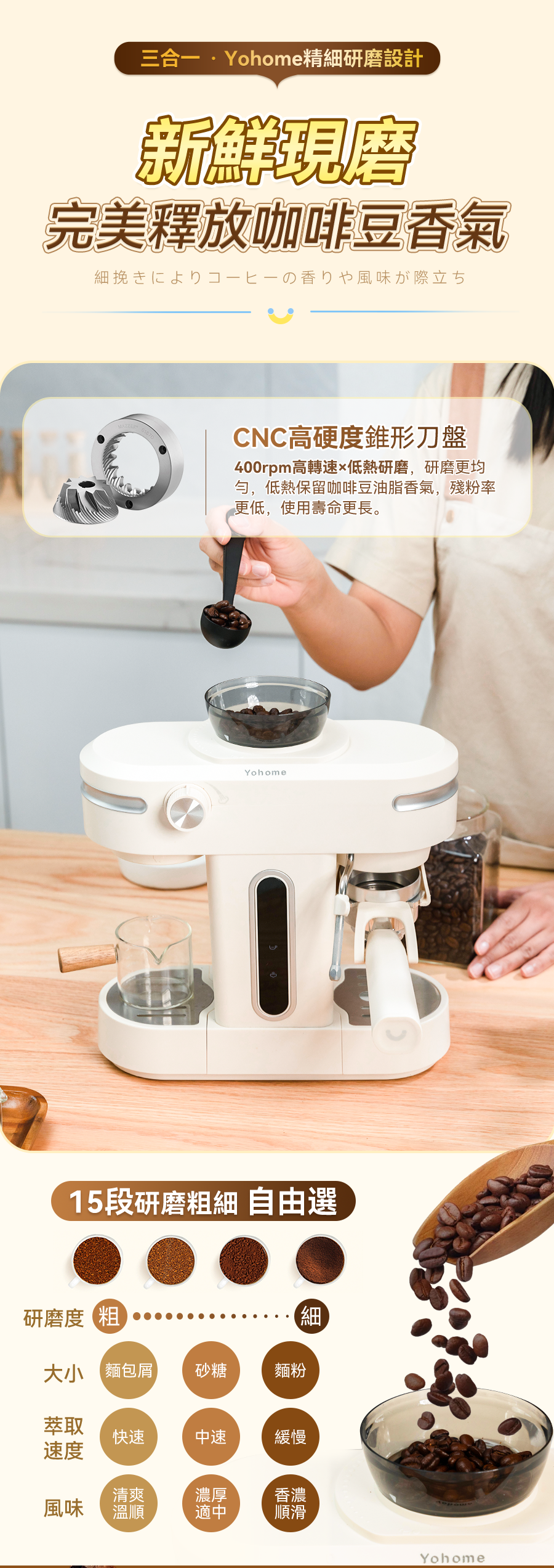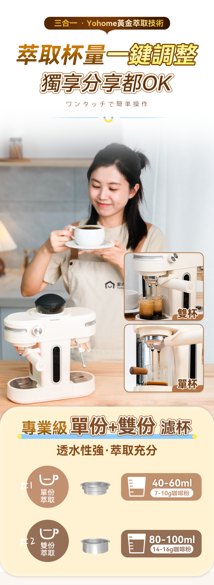 小而強大的半自動意式咖啡機 #Yohome 迷你專業級現磨鮮萃奶泡3合1半自動家庭意式咖啡機