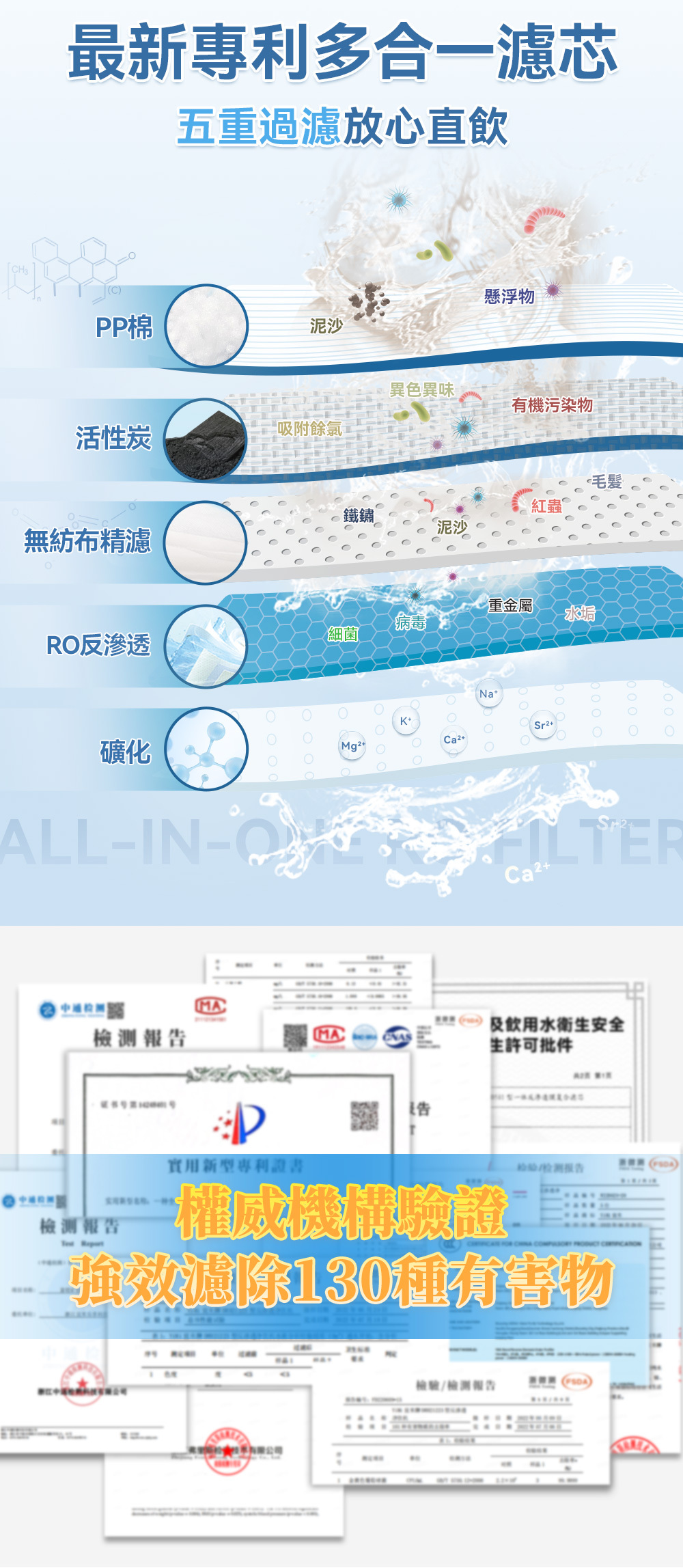 ✅5合1 ro富鍶濾芯,濾除130種有害物質,保留微量礦物質,每一口都是礦泉水。