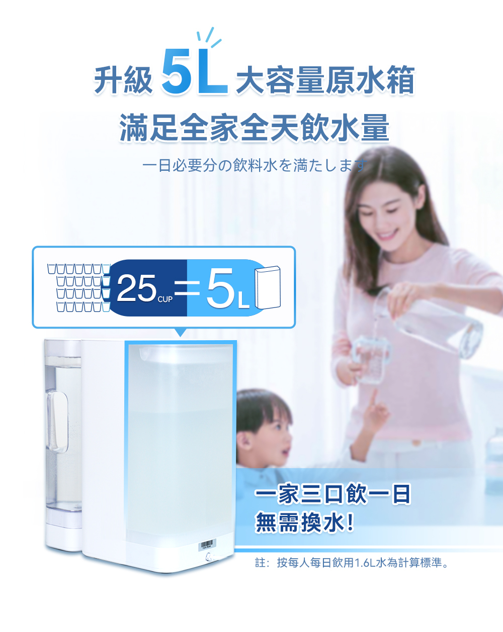 💧 水箱升級5L:滿足一家5-6口一日飲水量