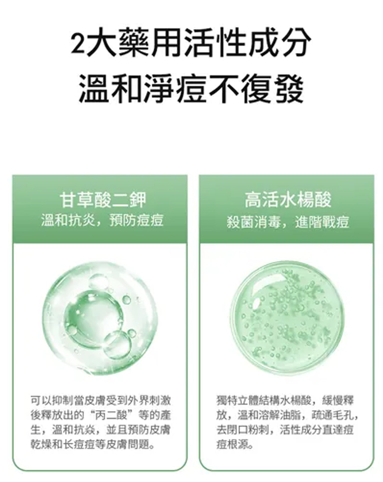 -2大藥用活性成分(甘草酸二鉀、高活水楊酸)溫和淨痘不復發